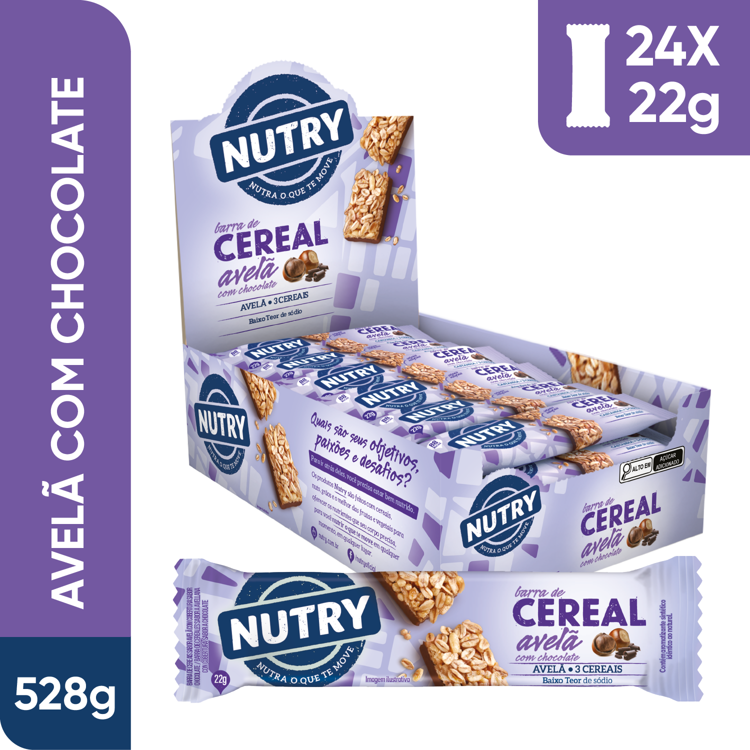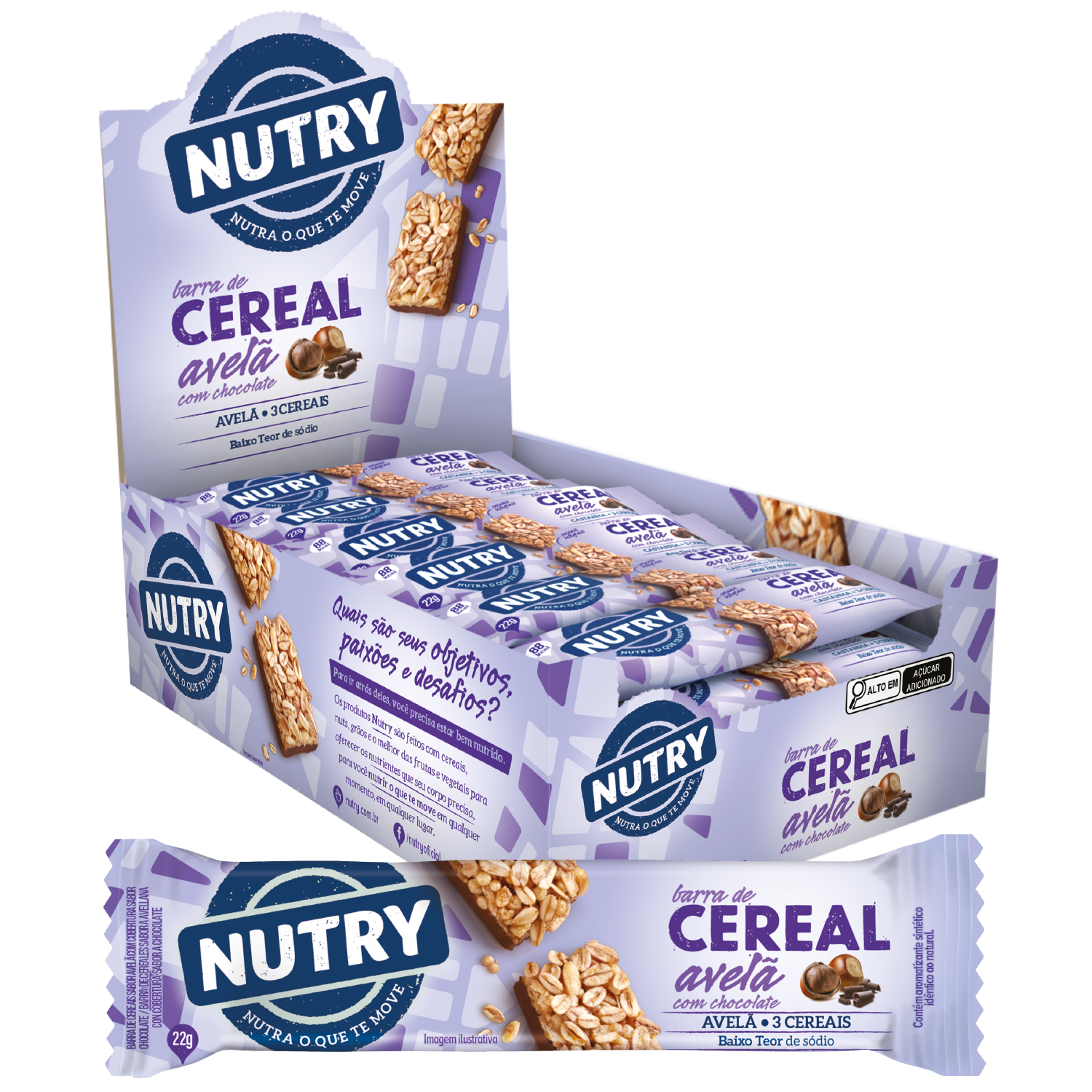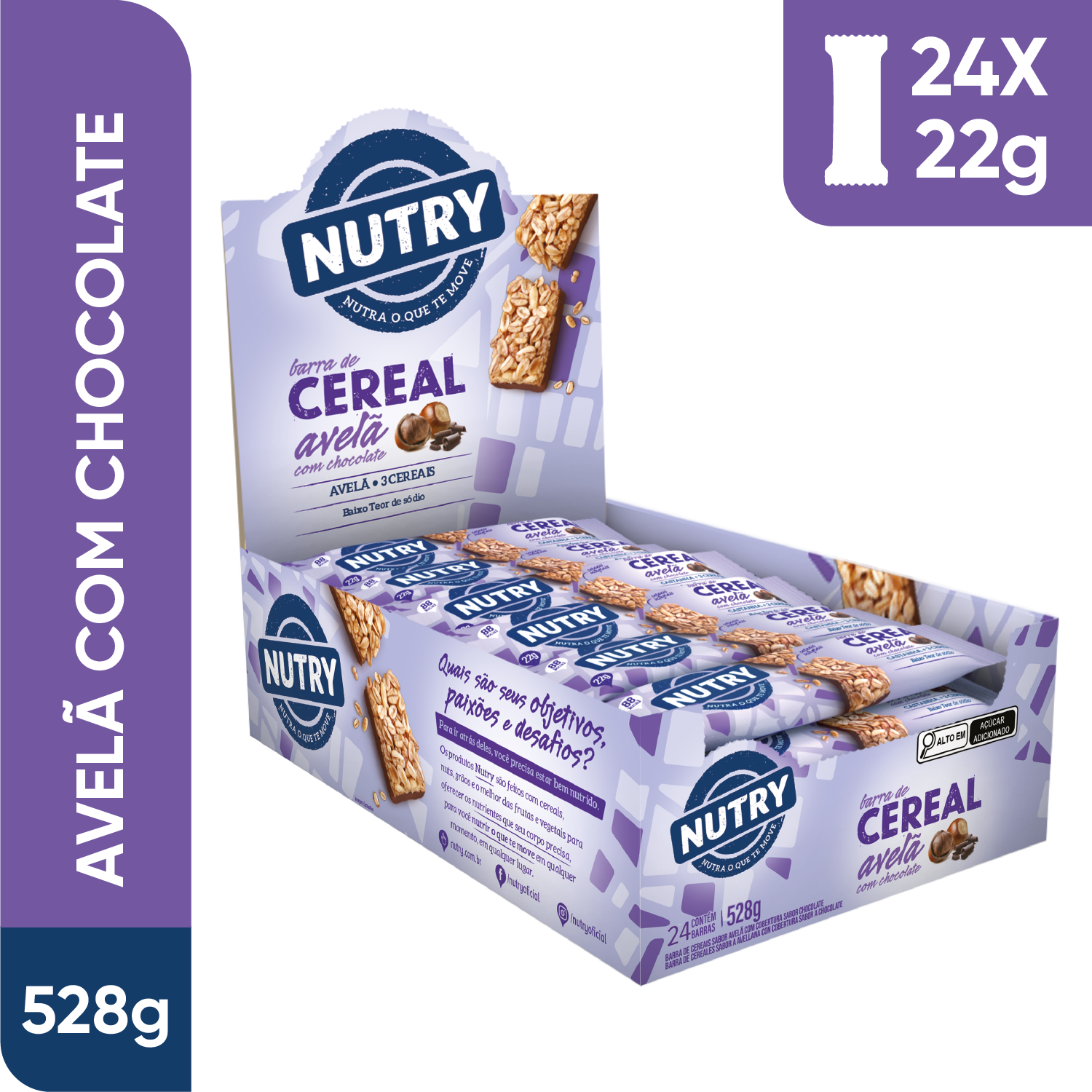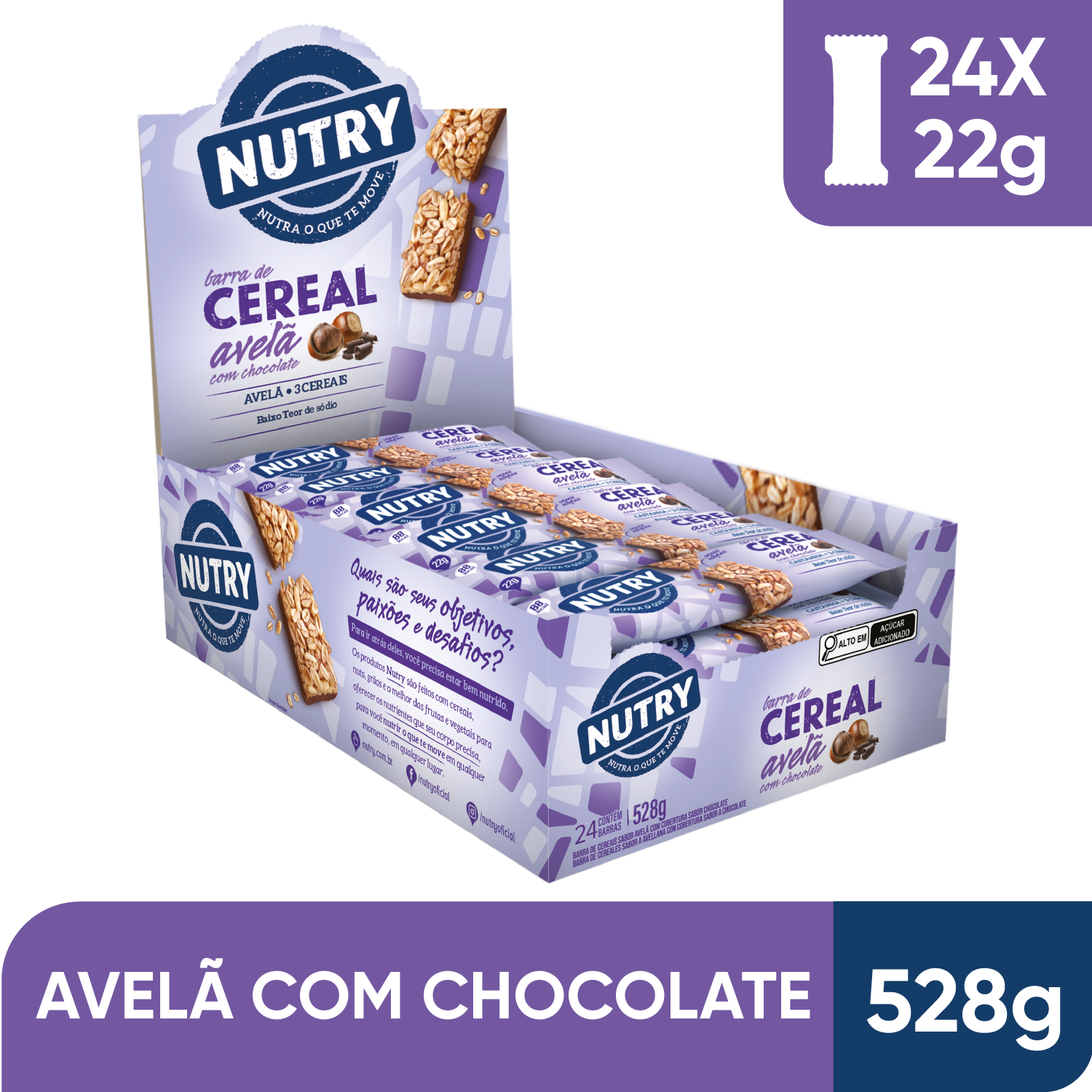 Barra de Cereais Nutry Avelã com Chocolate 24 x 22g - Com 3 Cereais e Avelã Barra de Cereais Nutry Avelã com Chocolate 22g - Display Com 24 Unidades Barra de Cereais Nutry Avelã com Chocolate 22g - Display Com 24 Unidades - Com 3 Cereais e Avelã |