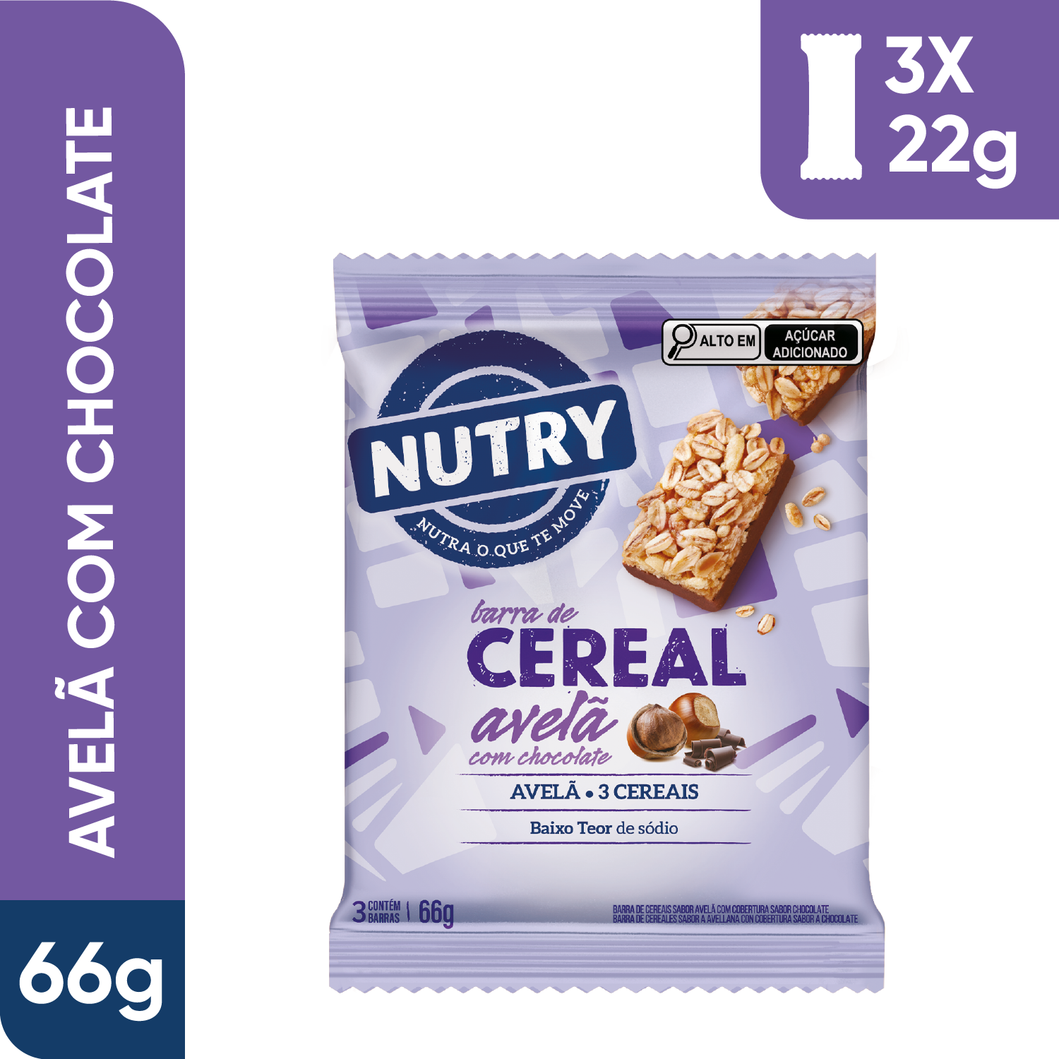Barra de Cereais Nutry Avelã com Chocolate 3 x 22g - Com 3 Cereais e Avelã Barra de Cereais Nutry Avelã com Chocolate 22g - Multipack Com 3 Unidades Barra de Cereais Nutry Avelã com Chocolate 22g - Multipack Com 3 Unidades - Com 3 Cereais e Avelã |