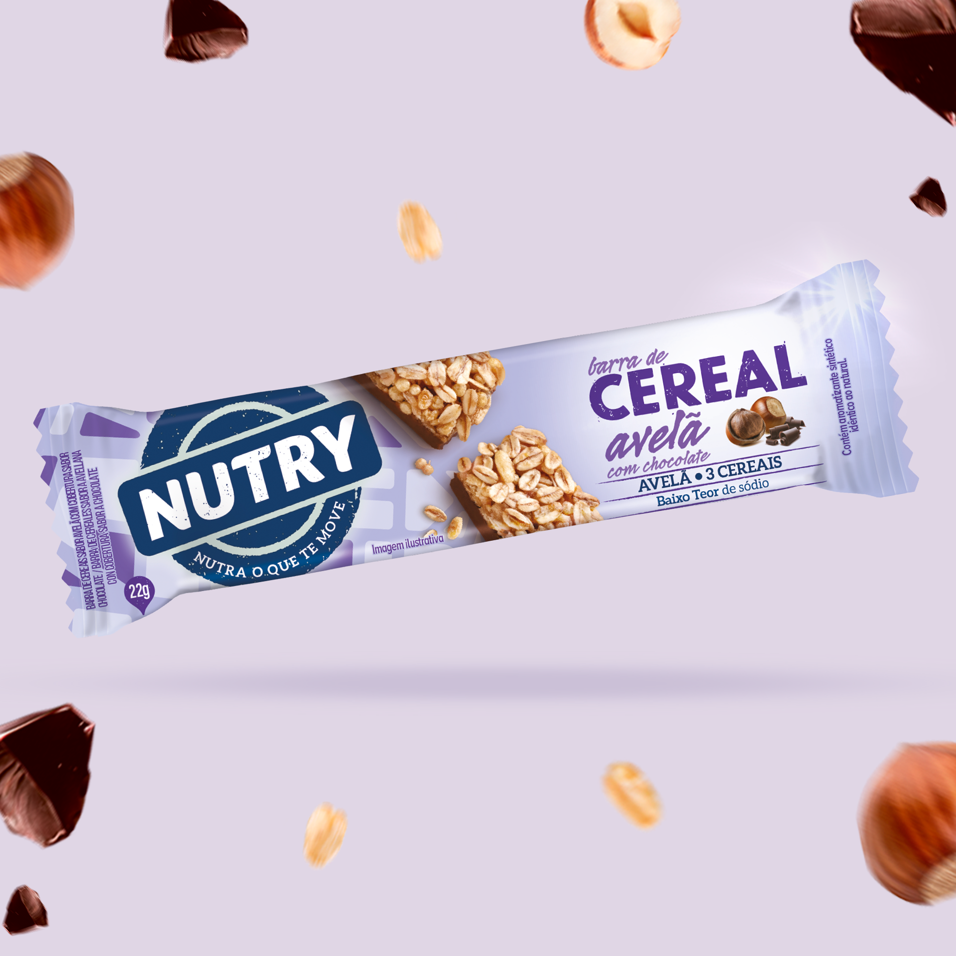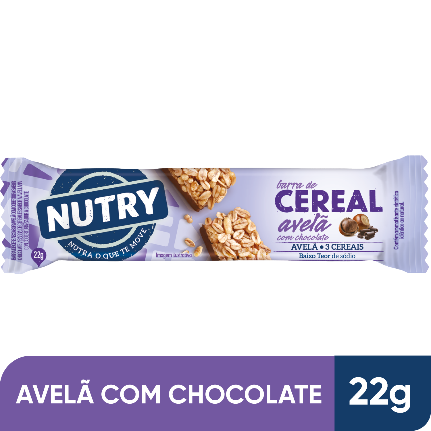 Barra de Cereais Nutry Avelã com Chocolate 22g - Com 3 Cereais e Avelã |