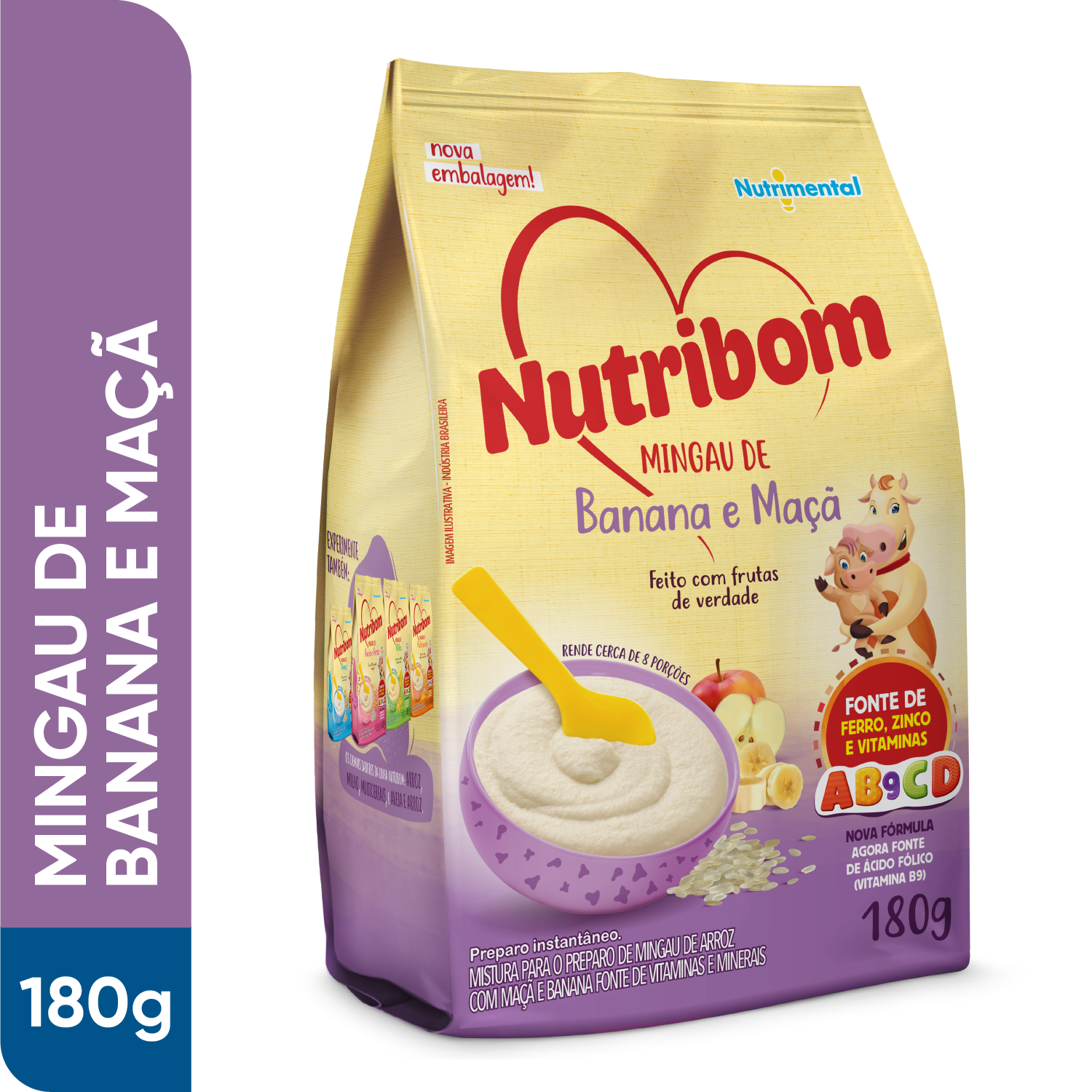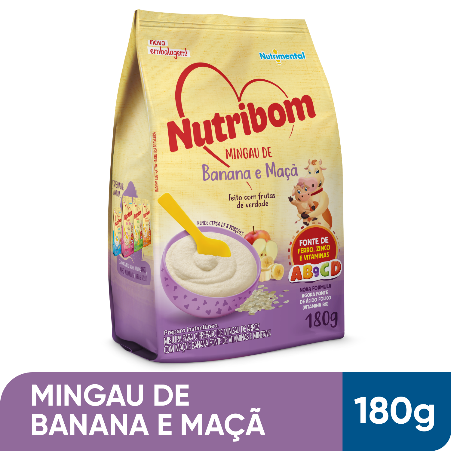 Mingau Nutribom Banana e Maçã 180g - Feito Com Frutas de Verdade, Fonte de Ferro, Zinco e Vitaminas |