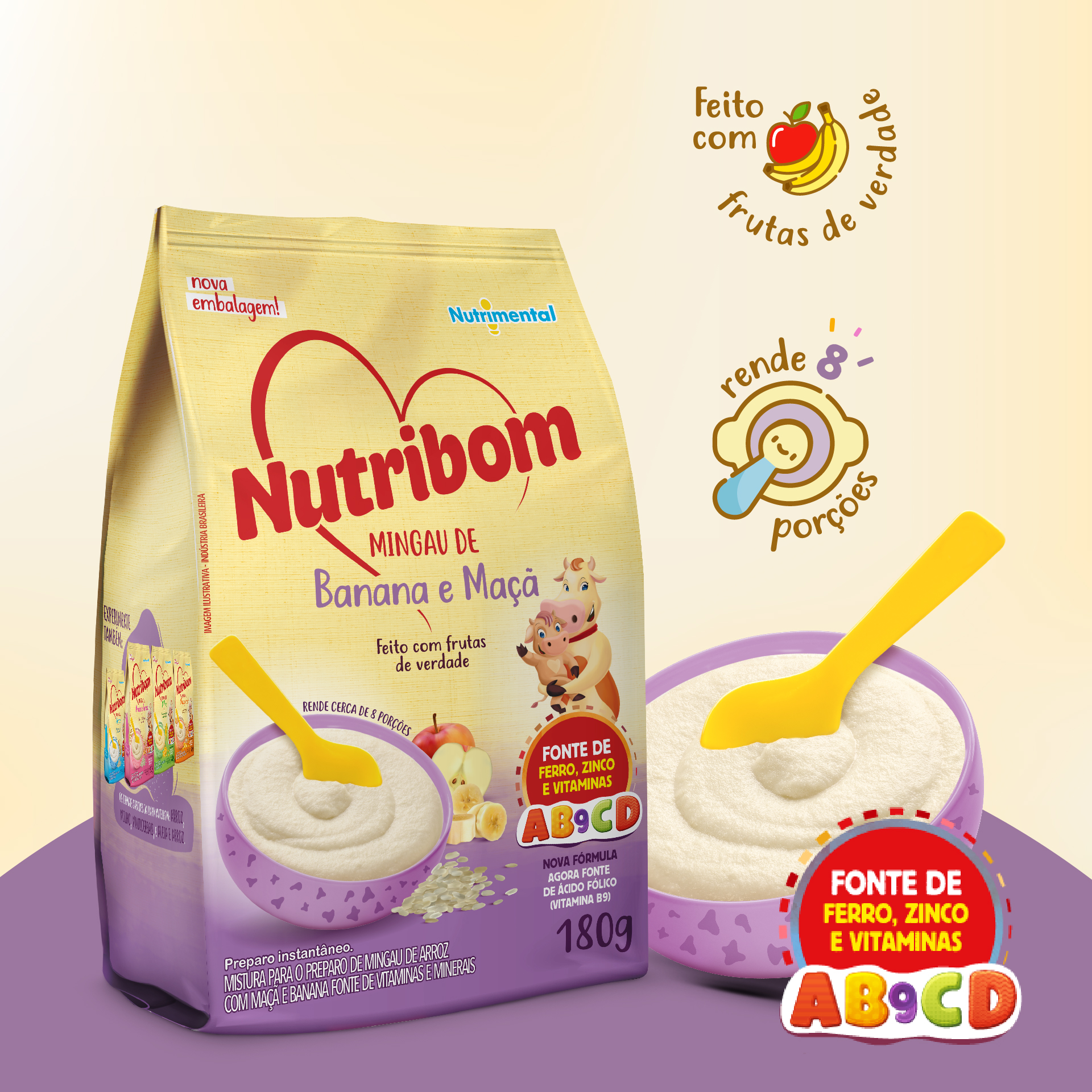 Nutribom é uma linha de Mingaus infantis de preparo instantâneo, feito à base de cereais e enriquecidos com vitaminas e minerais. Seu sabor é suave, e sua textura é uniforme. Mingau Nutribom é nutritivo, prático, saboroso e com a variedade que as crianças adoram!